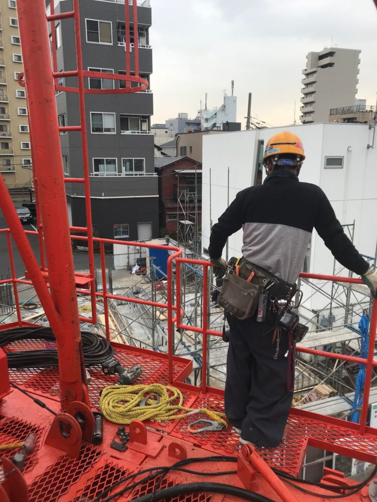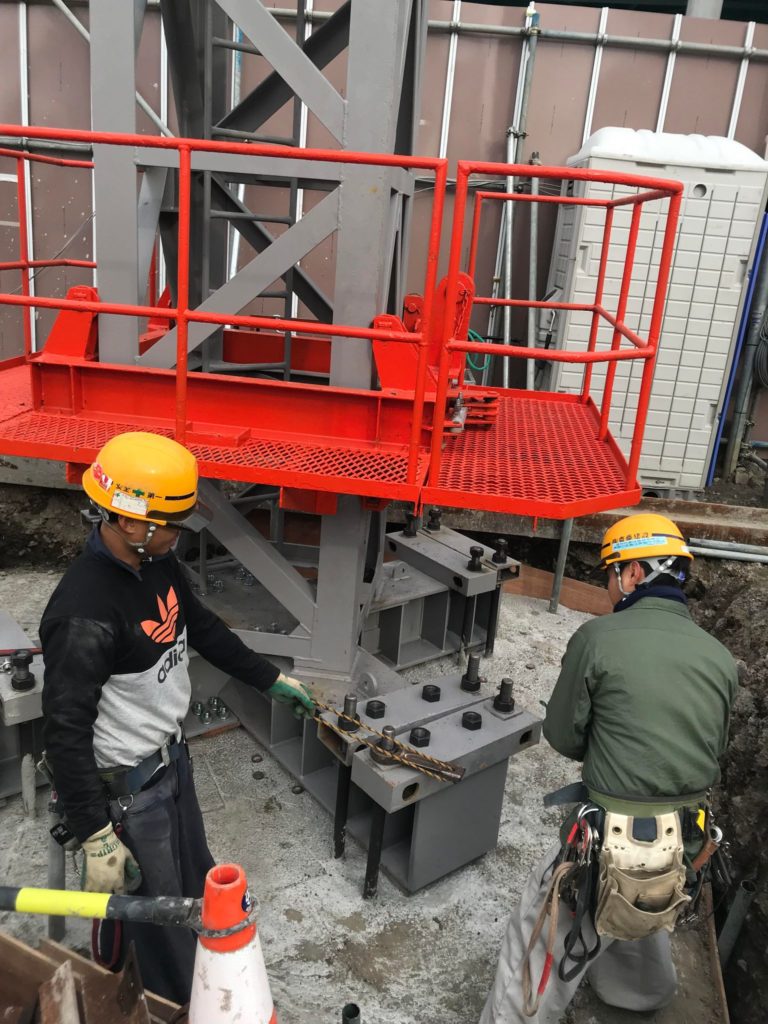 - 建設現場における鳶工事(鉄骨建方、足場の組立解体、建設機械の組立解体)